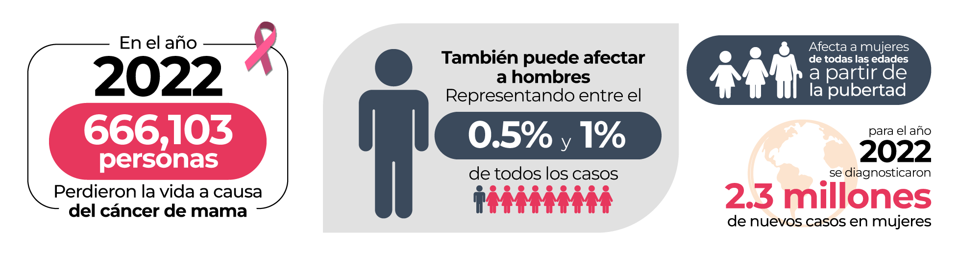 El cáncer de mama es una enfermedad que afecta a millones de personas en todo el mundo, causando un profundo impacto en sus vidas y en las de sus seres queridos. En el año 2022, 666,103 personas perdieron la vida como consecuencia de esta enfermedad. Lo más preocupante es que, en muchos casos, el cáncer de mama afecta a mujeres que no presentan factores de riesgo evidentes, más allá de su sexo y edad. También es importante destacar que sólo el 15% de los cánceres son hereditarios.