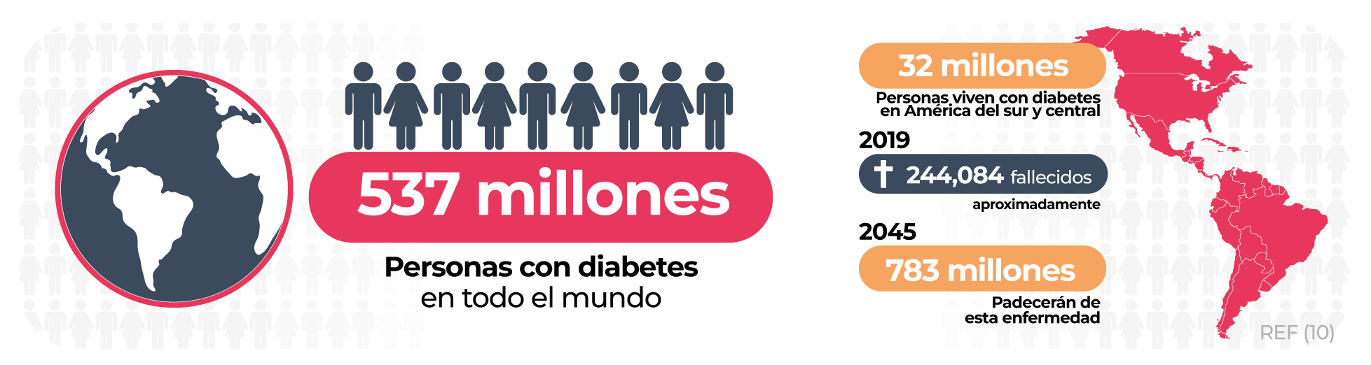 En el mundo, 537 millones de personas viven con diabetes. Se estima que para el año 2040, esta cifra se incrementará en un 50%, es decir, se prevé que aproximadamente 783 millones de personas padecerán esta enfermedad.