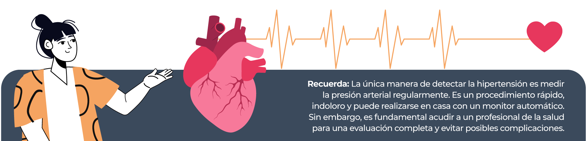 La hipertensión suele ser silenciosa, es decir, no produce síntomas visibles, por lo que muchas personas no saben que la tienen. La única forma de detectarla es medirse la presión regularmente con un profesional de la salud.