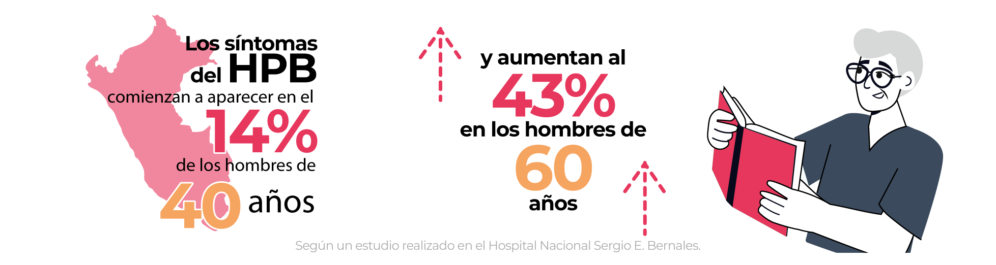 En Perú, la Hiperplasia Prostática Benigna (HPB) es una condición que afecta a muchos hombres, especialmente a medida que envejecen. Un estudio realizado en el Hospital Nacional Sergio E. Bernales muestra que los síntomas de HPB comienzan a aparecer en el 14% de los hombres de 40 años y aumentan al 43% en los hombres de 60 años.