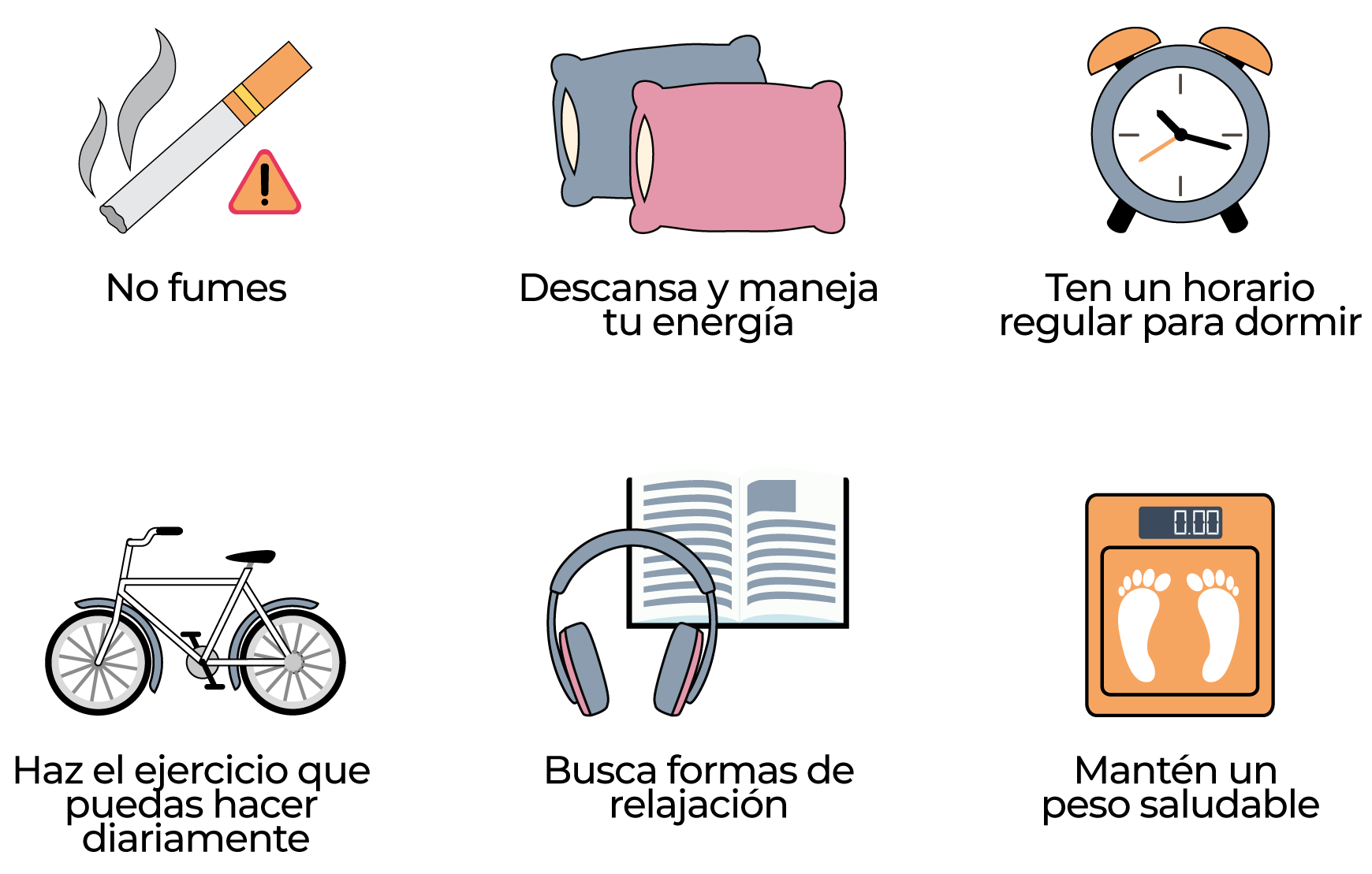 Además de seguir las pautas dietéticas específicas, es fundamental mantener un estilo de vida saludable. Esto incluye realizar actividad física según lo permita tu condición y recomendación médica. Mantener un peso saludable y evitar el tabaquismo son aspectos cruciales para mejorar tu bienestar general. Además, integrar el apoyo emocional y social, ya sea a través de grupos, terapia o actividades recreativas, puede contribuir a mejorar significativamente tu calidad de vida durante el tratamiento y la recuperación.
