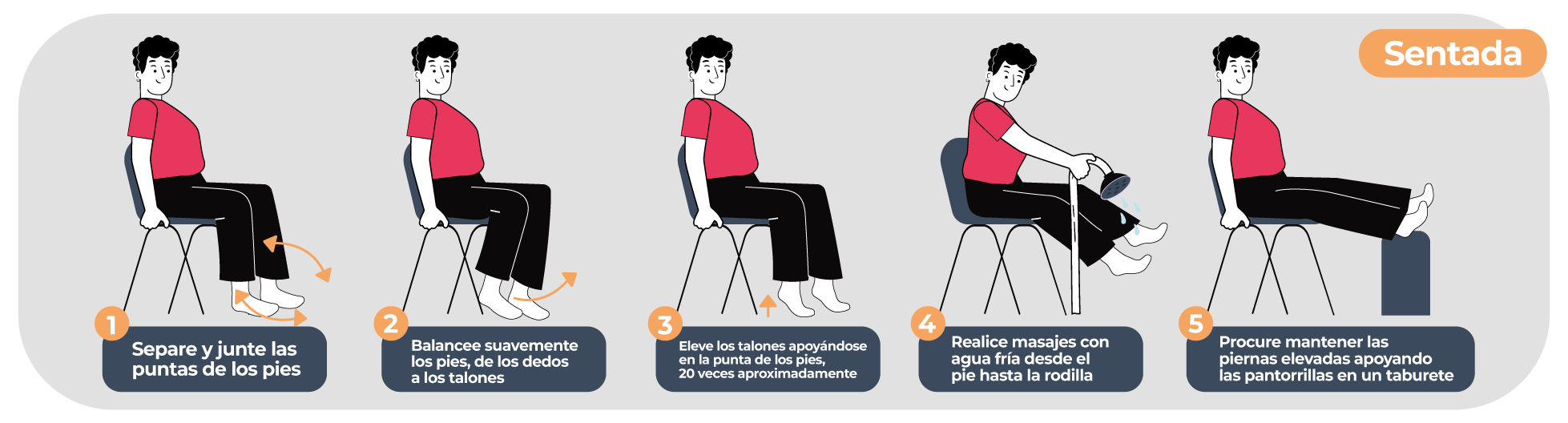 - Evitar estar mucho tiempo sentado o de pie: Siempre que sea posible, muévete cada 30 minutos para evitar estancamiento del flujo.